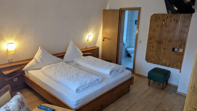 Unsere Zimmer befinden sich im ersten und zweiten Stock des Hauses, über Treppen erreichbar. Wir bieten Ihnen Doppelzimmer, 2-Bett-Zimmer (separat stehende Betten) sowie Einzelzimmer und 3-Bett-Zimmer